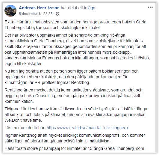 Greta Thunbergs skolstrejk var skolk till en början. Självklart har inte Farbror Torsten följt sossens kommentarer på Twitter.