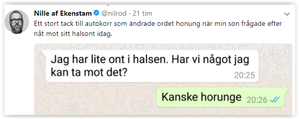 Ja, jävlar så pinsamt och olämplig autokorr. Blir inte lätt att laga den relationen till sonen kanske.