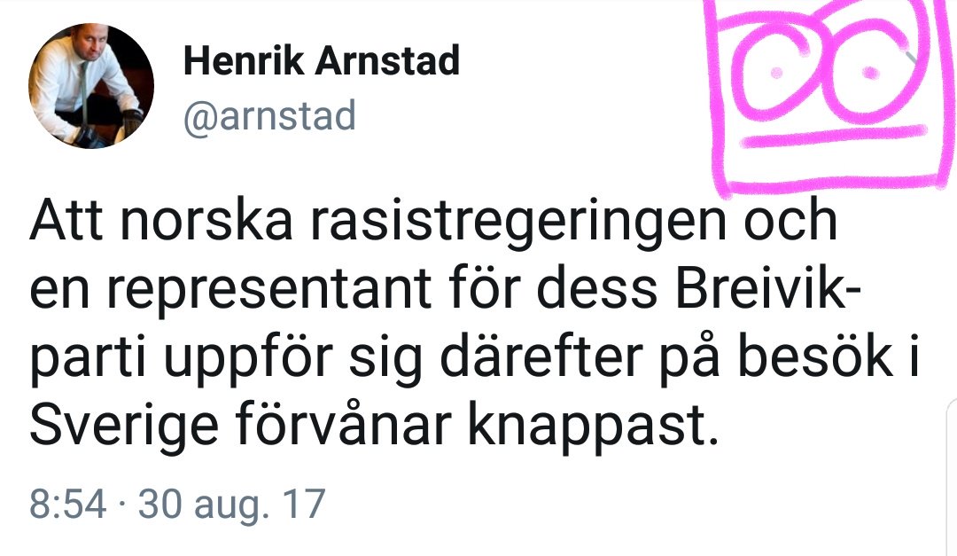 Låt oss ta det här med Henrik Arnstad från början. Nog för att rasismen är skit, men vad är rasism och vad är inte det? För svenska Socialdemokratiska ministrar gick det i sensommaren 2017 bra att ställa in möten med demokratiskt valda ministrar, däremot ställer de inte in min diktaturens kreatur i Iran.
